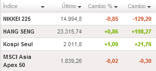 pierde los 15.000 puntos. El índice Nikkei de la Bolsa de Tokio ha sufrido hoy